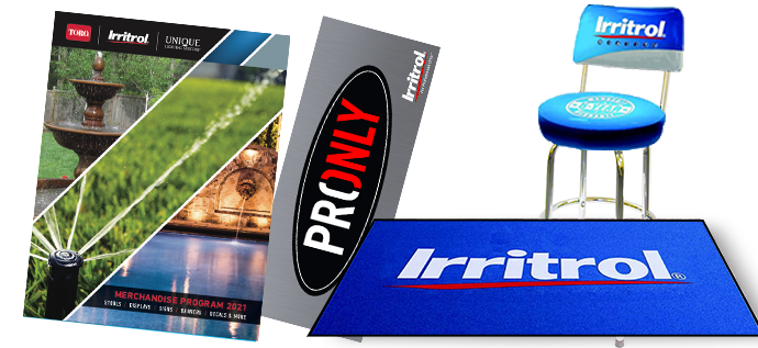 Dress up your sales counters and showrooms with Irritrol’s in-store merchandising materials. To order our newest banners, posters, doormats, bar stools, and more.