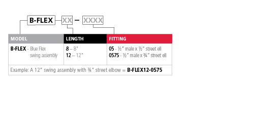 | B-FLEX8-0575 | 8” x ½” male x ¾” street ell |