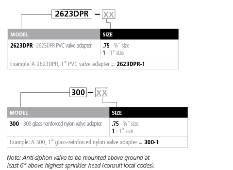 | 300-.75 | ¾” glass-reinforced nylon valve adapter |