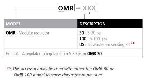 Pressure Regulator OMR-30: 5 to 30 psi, OMR-100: 5 to 100 psi |